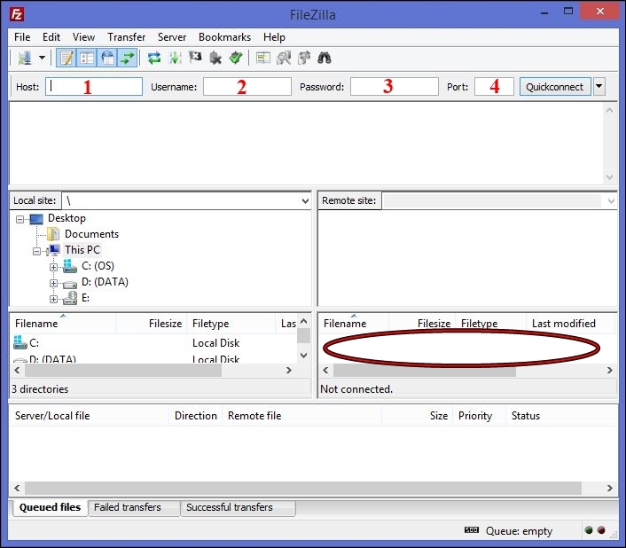 FTP stands for File Transfer Protocol, and it’s basically the generic name for any downloadable program that allows you to upload files without using a slower-paced browser-based system. One of the most popular forms of FTP is a free, open source program called Filezilla, which can be downloaded here. After downloading the program, open it up and you’ll reach a window that resembles the screenshot posted below: